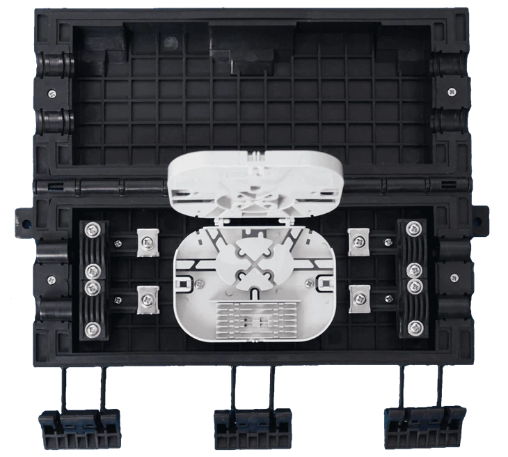 Zu den Funktionen gehört unter anderem die Verwaltung von Glasfaserkabeln. Der Inline-Verschluss erleichtert auch die ordnungsgemäße Kabelführung und bietet Platz und Routing-Optionen für ein- und ausgehende Glasfaserkabel, sodass eine organisierte und ordentliche Kabelanordnung möglich ist. Dies trägt dazu bei, die Gesamtintegrität des Systems aufrechtzuerhalten und die Wartung zu vereinfachen.